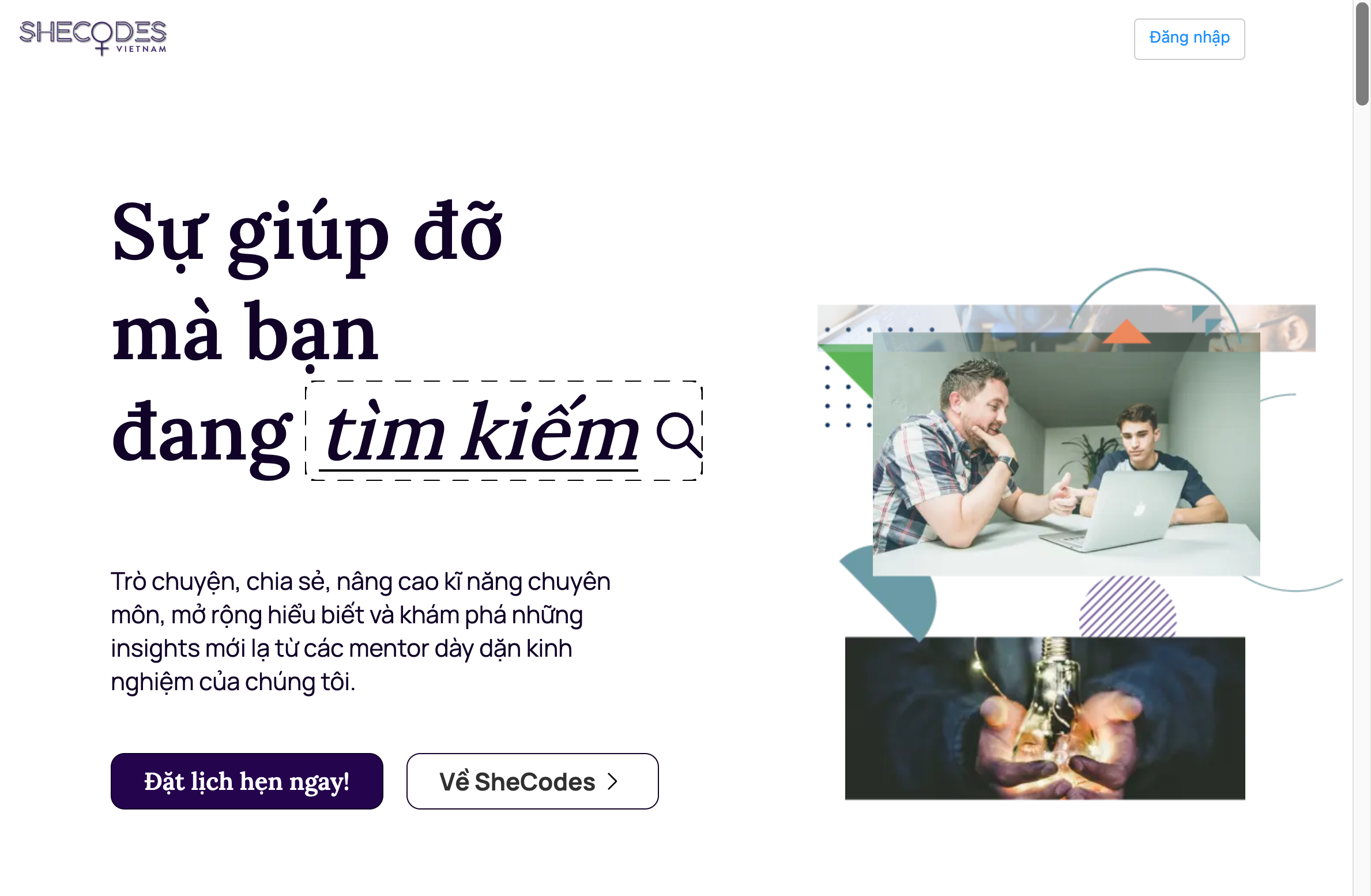 Designing and building a mentorship platform for SheCodes Vietnam — connecting aspiring developers with experienced mentors for 1:1 guidance.